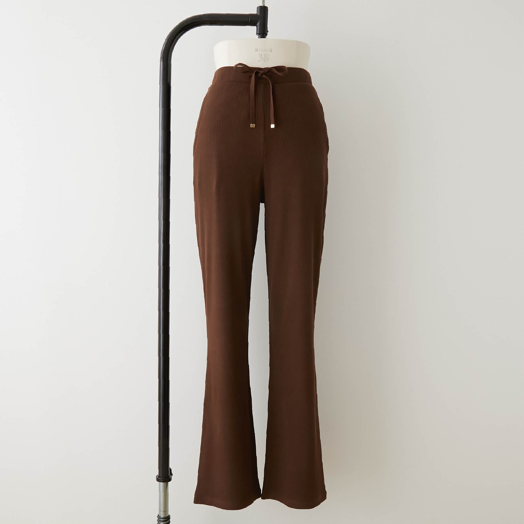 ・パンツ:ウエストゴム+ドローストリング。両脇ポケット付き。ドローストリングの金属チップはグレーにはシルバー、ブラウンにはゴールドを採用。