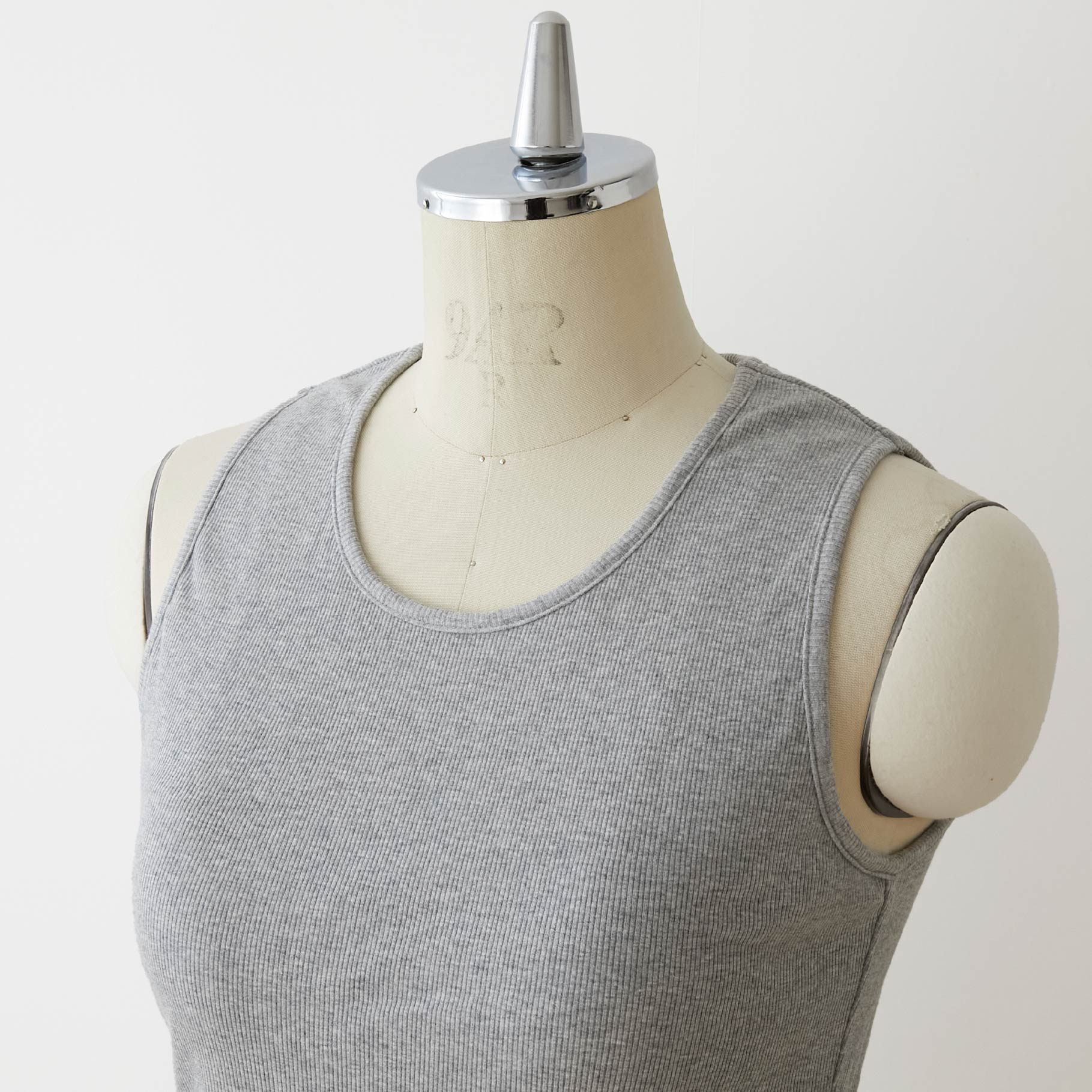 ・素材:レーヨン49% コットン42% ポリウレタン9%(なめらか、ストレッチ、細かなリブ調の表情)※タンクトップカップ部分:ポリエステル61% レーヨン35% ポリウレタン4%